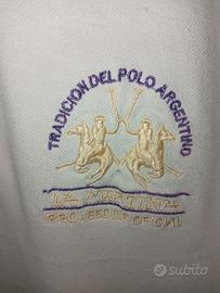 Polo La Martina , tg L color Bianco, Viola e Oro . In ottime condizioni . (POSSIBILE SPEDIZIONE TRAMITE V1 N T3 D O SCAMBIO A MANO IN VALBORMIDA , SAVONA o RiVIERA)