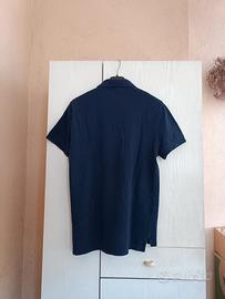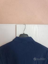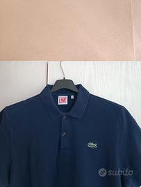Polo due bottoni originale marca Lacoste taglia 5 misure da ascella ad ascella 52cm lunghezza 69cm spalle 42cm manica 21cm colore blu scuro logo ricamato spacchetti laterali 100% cotone ottime condizioni.Per ulteriori info e foto su questo articolo o su qualsiasi altro prodotto non esitate a scrivermi