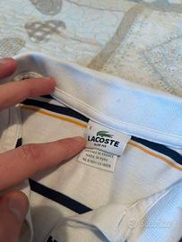 Polo Lacoste Bianca a righe a mezze maniche Taglia S