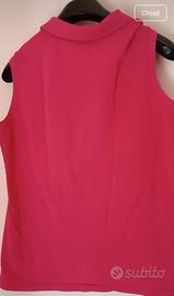 # Polo Lacoste donna senza maniche, colore fucsia acceso, con iconico logo ricamato sul petto. Taglia 44. Condizioni buone, capo usato ma ben tenuto.