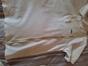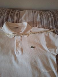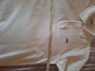 Polo Lacoste originale, Tg. 4, colore bianco, perfetta non ha sbiaditure ( è presente un minuscolo / piccolissimo forellino sotto il colletto è invisibile si vede nell'ultima foto) nelle foto le relative misure
