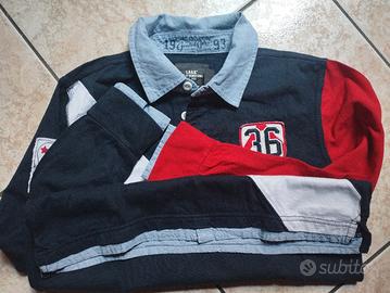polo manica lunga ragazzo collo in jeans leggero che viene richiamato anche sui polsini e in fondo alla maglia cotone 100% tg 10/12anni