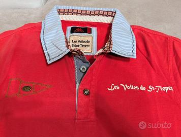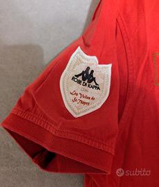 Polo maniche corte Robe di Kappa. Colore rosso con doppio colletto e decori sulle maniche. Taglia large, vestibilità slim fit in cotone elasticizzato.