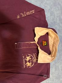 Vendo polo maniche lunghe la martina originale , la polo ha un disegno cucito sulla schiena , e toppa applicata sul petto, e un'altra cucita sulla manica Dx , di colere viola , colletto viola e nocciola a righe, e righe sulla fine delle maniche , la vendo a 50€ piu 10€ di spedizione , consegna a mano, o spedizione x altre info contattatemi in privato grazie