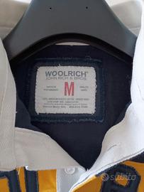 Polo Woolrich maniche lunghe blu con colletto bianco, banda gialla e scritta applicata, spacchetti ai fianchi, tg M, 100% cotone. Larghezza ascelle 56, lunghezza spalla bordo manica 65, lunghezza spalla fondo 61. Indossata pochissimo