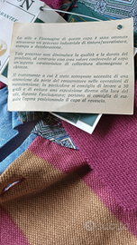 Un'etichetta in cartoncino riporta la scritta visibile nell'ingrandimento della foto "This item is manufactured by traditional methods with more rip resistance than standard fabric" (cioè: "Questo articolo è fabbricato secondo metodi tradizionali con maggiore resistenza allo strappo rispetto ai tessuti standard").