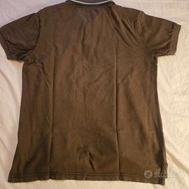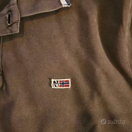 vendo polo napapijri, colore marrone, con inserti nel colletto bianchi e blu, maniche corte, taglia L, ottimo cotone, fresca, elegante e leggera. misure in cm: spalla a spalla 43, petto 48, maniche 19, lunghezza 62. ottimamente tenuta, indossata pochissime volte, come nuova, appena lavata e igienizzata, comodissima e stupenda. euro 20