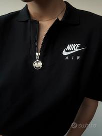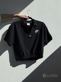 Polo nera crop della Nike a maniche corte con cerniera. Taglia M ma veste anche S. Mai indossatolo