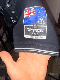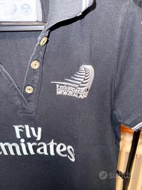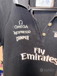 Polo North Sails, colore nero. Presenta loghi di sponsor come Emirates Team New Zealand, Omega, Nespresso e Toyota.
