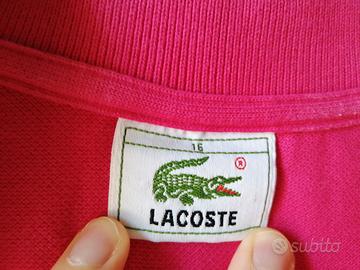 Polo originale Lacoste da donna, taglia UK16 (corrispondente ad una L), 100% cotone, con 2 bottoni sul davanti, color ciclamino/fucsia, come nuova.
