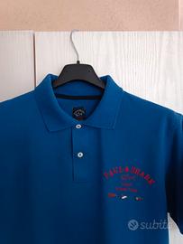 Polo due bottoni originale marca Paul & Shark taglia L misure da ascella ad ascella 55cm lunghezza 67cm spalle 46cm manica 24cm colore blu logo ricamato spacchetti laterali cotone retro vintage ottime condizioni.Per ulteriori info e foto su questo articolo o su qualsiasi altro prodotto non esitate a scrivermi