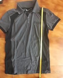 Polo grigia e nera con piccoli spacchi laterali. Usata pochissimo. Taglia S. Misure in foto.