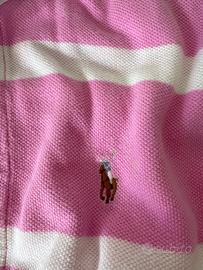 Questa polo Ralph Lauren, pensata per un bambino di sei anni, è un capo d'abbigliamento che unisce eleganza e comfort con un tocco di giocosa vivacità. Colori: Il tessuto in cotone si presenta con una base rosa pastello e righe orizzontali bianche, creando un effetto fresco e solare. Dettagli: A impreziosire il tutto, si aggiungono dei ritocchi di verde vivace all'interno del colletto.