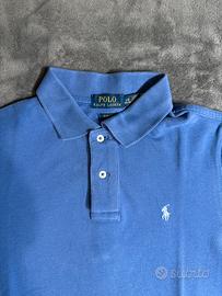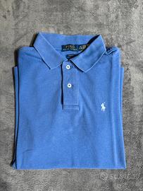 Polo Ralph Lauren originale da uomo, colore blu con logo bianco ricamato sul petto. Taglio classico, chiusura a due bottoni e tessuto in cotone piqué traspirante e resistente. Un must-have per outfit casual o più eleganti!