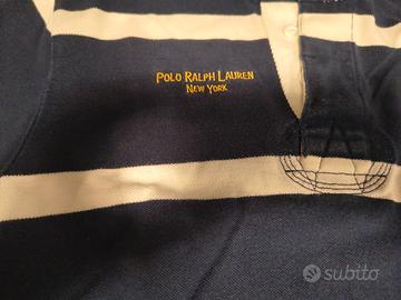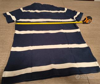 Polo Ralph Lauren con collo coreano, colore blu e bianco a strisce orizzontali, in perfette condizioni, misure in dettaglio nelle foto.
