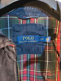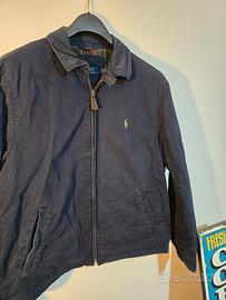 Giacca Harrington blu navy con fodera scozzese Polo Ralph Lauren vintage Taglia L Ottime Condizioni 100% Cotone