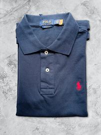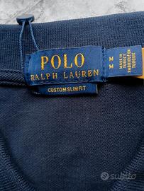 Vendo polo Ralph Lauren originale, taglia M, modello Custom Slim Fit, colore blu navy con logo cavallino ricamato in rosso. Vestibilità aderente ma comoda, perfetta per un look casual elegante.