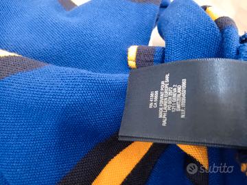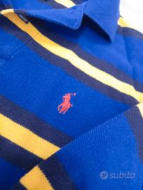 Polo in cotone a righe gialle nere e blu, maniche lunghe, bambino.