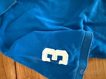 Logo ricamato grande lato cuore e numero 3 sulla manica destra, simbolo del capitano della squadra di polo.
