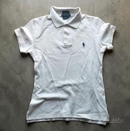 Vendo questa classica polo Ralph Lauren bianca a maniche corte, un capo intramontabile. La maglia è in piqué di cotone, molto comoda e versatile.