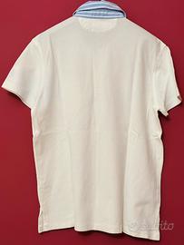 Colore bianco e logo rosso, colletto azzurro a righe