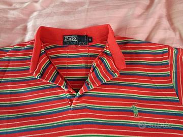 Rarissima polo Polo Ralph Lauren originale vintage degli anni '90. Un vero pezzo da collezione per gli amanti del brand. Caratteristica speciale: Etichetta blu vintage, Made in U.S.A. Design: Pattern a righe orizzontali multicolor (rosso dominante con righe blu, verdi, gialle e bianche). Logo: Pony ricamato in verde smeraldo. Taglia: S (vestibilità vintage, leggermente più comoda rispetto alle S moderne). Parte posteriore leggermente più lunga (classic tennis tail). Condizioni: Buone condizioni vintage. Unico segno del tempo sull'etichetta interna (come da foto). Altri articoli sul mio profilo con sconti su acquisti multipli 📦 Spedizione entro 24 ore! ❓ Non esitare a contattarmi per qualsiasi domanda.