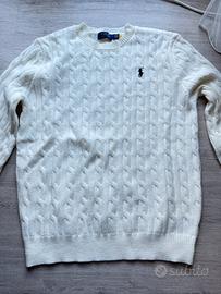 Classic Polo Ralph Lauren cable knit sweater in white.