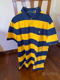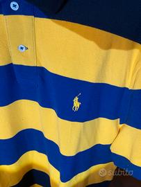 Polo Ralph Lauren uomo originale, taglia XL, Custom Slim Fit, fantasia a righe blu e giallo, logo ricamato sul petto