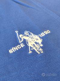 Polo US Polo Assn blu, macchia da deodorante sotto le ascelle, ovviamente non visibile da indossata, Logo ricamato, Bottone di ricambio