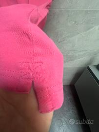 Polo rosa taglia M. Logo ricamato nella stessa tonalita. Sciancrata sui fianchi con piccoli spacchetti sul fondo