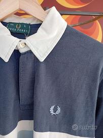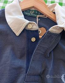 Polo rugby Fred Perry blu vintage righe colletto