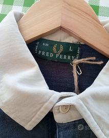 Bellissima polo rugby Fred Perry vintage. Colore blu con banda chiara e colletto a contrasto. Logo ricamato sul petto. Ottime condizioni. Taglia L