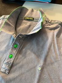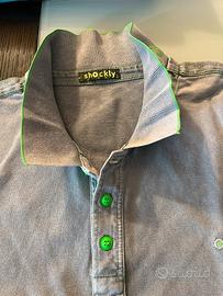 Polo grigia con profili verde acido E stampa sul collette Taglia XL