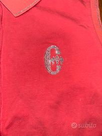 Polo smanicata da donna, conte of Florence, color salmone con fantasia brillantina e colletto taglia L IT 44 EU 40