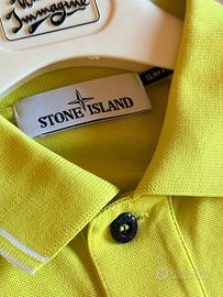 Polo Stone Island size M giallo fluorescente nuova originale senza cartellino materiali 95% cotone 5% elastan misure ampiezza spalle 41cm circa, lunghezza 68 cm circa. vendo 90 euro.