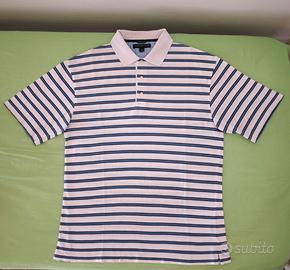 Polo da uomo Tommy Hilfiger, linea esclusiva GOLF, taglia L, in raffinato bianco con righe blu e azzurre.