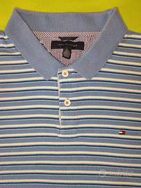 Polo da uomo Tommy Hilfiger, taglia XL, colore azzurro con multi righe a contrasto.