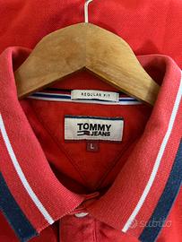 Descrizione: Polo originale Tommy Jeans colore rosso, logo Tommy ricamato sul petto, colletto con strisce blu e bianche. Tessuto in cotone di qualità, vestibilità comoda, perfetta per l'estate e per outfit streetwear o casual.