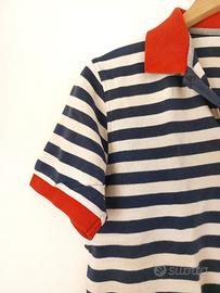 T-shirt polo uomo a righe blu scuro e bianche con colletto abbottonabile della marca Sun 68. La polo è in puro cotone e viene venduta in ottime condizioni, senza scuciture o difetti.