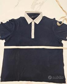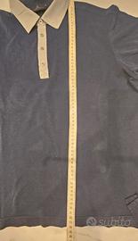 Polo da uomo Angelico in filo di scozia blu. Presenta un colletto a contrasto e chiusura a bottoni.