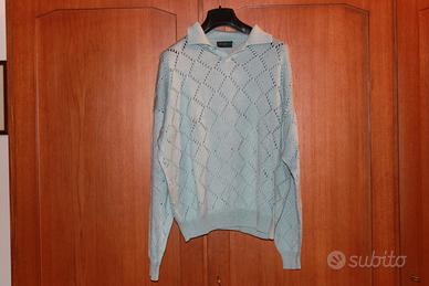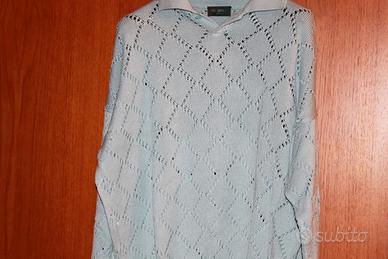 Polo Uomo ( maglia , maglioncino , maglione ) cotone 100% VERSACE linea ISTANTE Azzurro Traforata .
