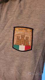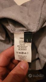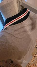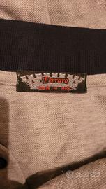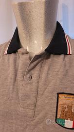 Polo Uomo, marca Ferraro, colore grigio medio con collo e profili in contrasto bianco e blu navy. La polo. 100% Cotone è in taglia L.