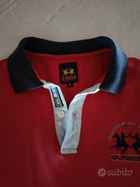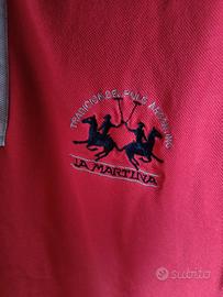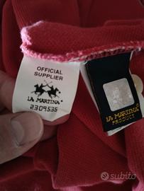 Polo uomo in cotone a maniche corte La Martina, color rosso fragola con colletto blu, taglia M. Ottimo stato. Euro 35.