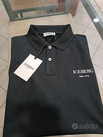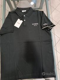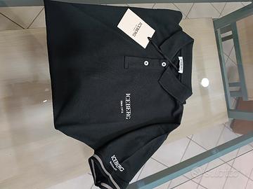 Polo uomo nera Iceberg taglia M-L-XL-XXL modello manica corta chiusura collo con bottoni composizione in cotone ed elastame logo sul petto logo sul braccio prezzo di cartellino 120 euro
