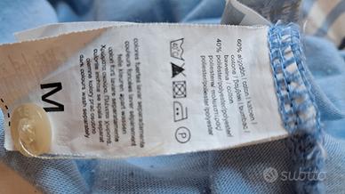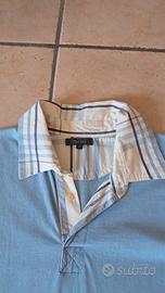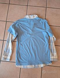Polo uomo Tex Man, taglia M, colore azzurro chiaro, con particolare effetto doppia manica e inserti stile camicia a righe su collo, polsini e fondo. Comoda e originale, adatta per mezza stagione o look casual. Dettagli: marca: Tex Man taglia: M Ampiezza spalle 47 cm, lunghezza maniche 62, lunghezza 71 cm composizione: 60% cotone, 40% poliestere colore: azzurro chiaro con inserti a righe bianchi e blu modello: effetto polo/camicia con maniche lunghe Condizioni: ottime, come da foto.