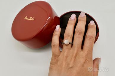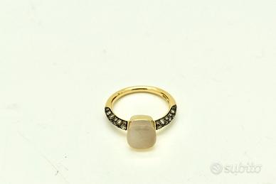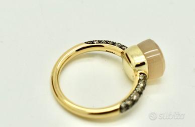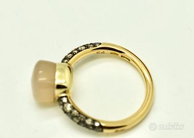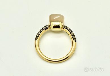 Anello in oro rosa e bianco 18K, con 1 pietra di luna chiara da 4,7 ct e 36 diamanti brown da 0,48 ct
