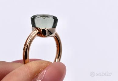 Anello in oro rosa e bianco 18K con una prasiolite di 7 ct circa