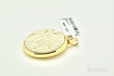 Ciondolo Pomellato collezione Victoria in oro rosa, avorio fossile e diamante di circa 0.09ct.