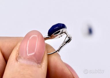 orecchini oro bianco 18 kt, diamanti 0,20 ct e lapis blu