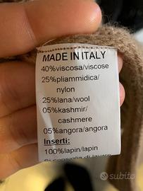 VENDO PONCHO da Donna, con Inserti in lapin tinta MARRONE/BEIGE, made in Italy, Donatella De Paoli. Capo di campionario di pregiata fattura artigianale. NUOVO.